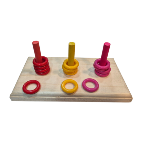 Vibrant wooden toy with blocks and bell – great for chewing and climbing fun.