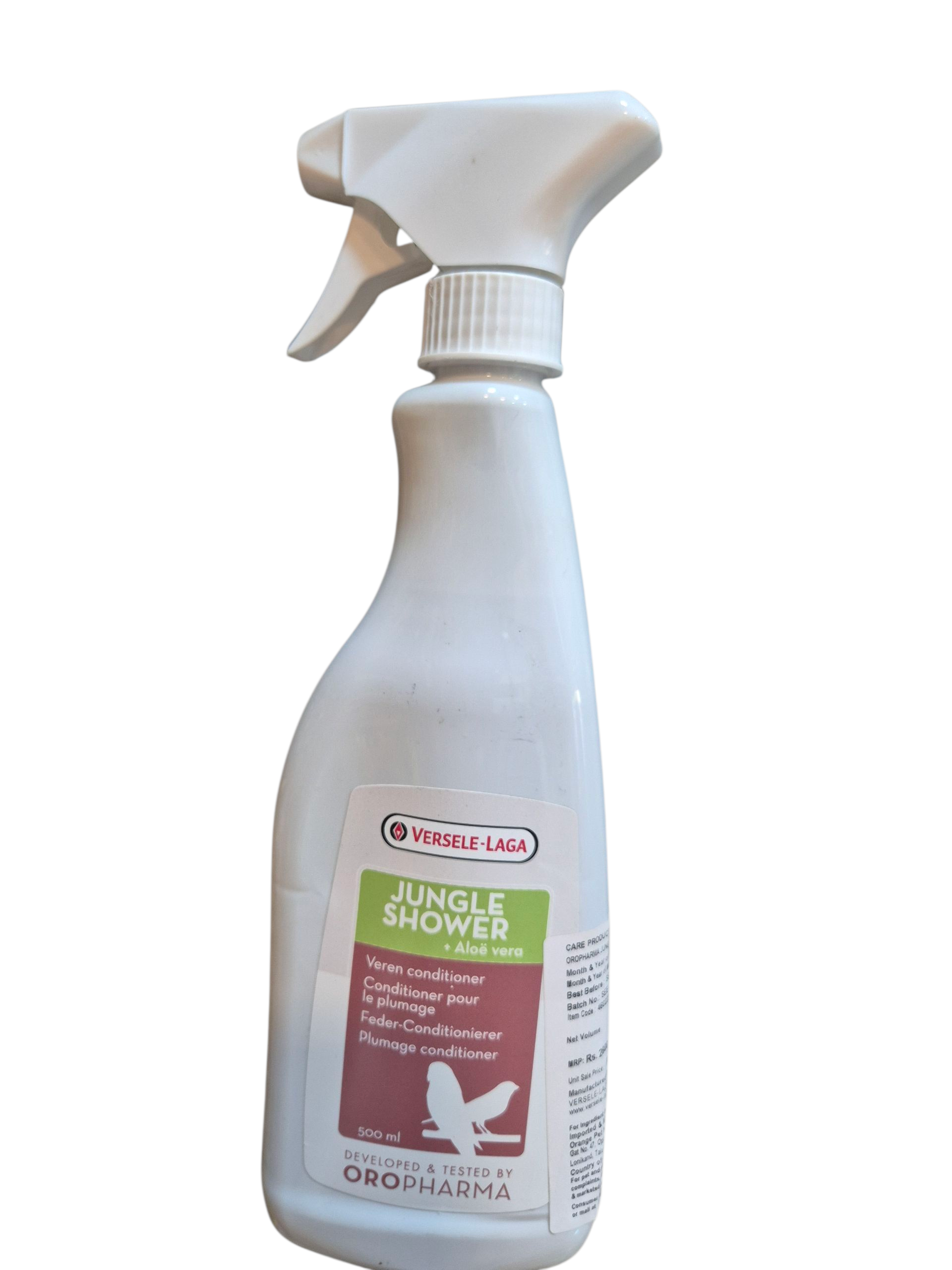 Feather conditioning spray enriched with Aloe Vera for shiny, healthy plumage.