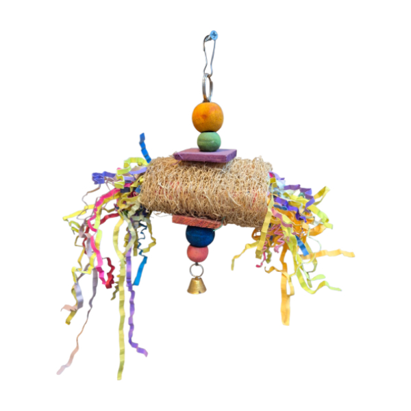 This 9″x9″ step toy features two wooden rods connected by vibrant beads, creating a fun and interactive swing for your bird. Designed to enhance your bird’s balance and encourage movement while adding a colorful touch to the cage.